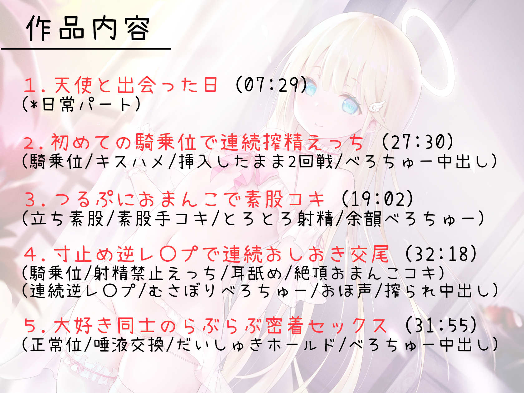 淫语 逆强奸/女上男 男性受 贫乳/微乳 天使/恶魔 高冷攻 环绕音
